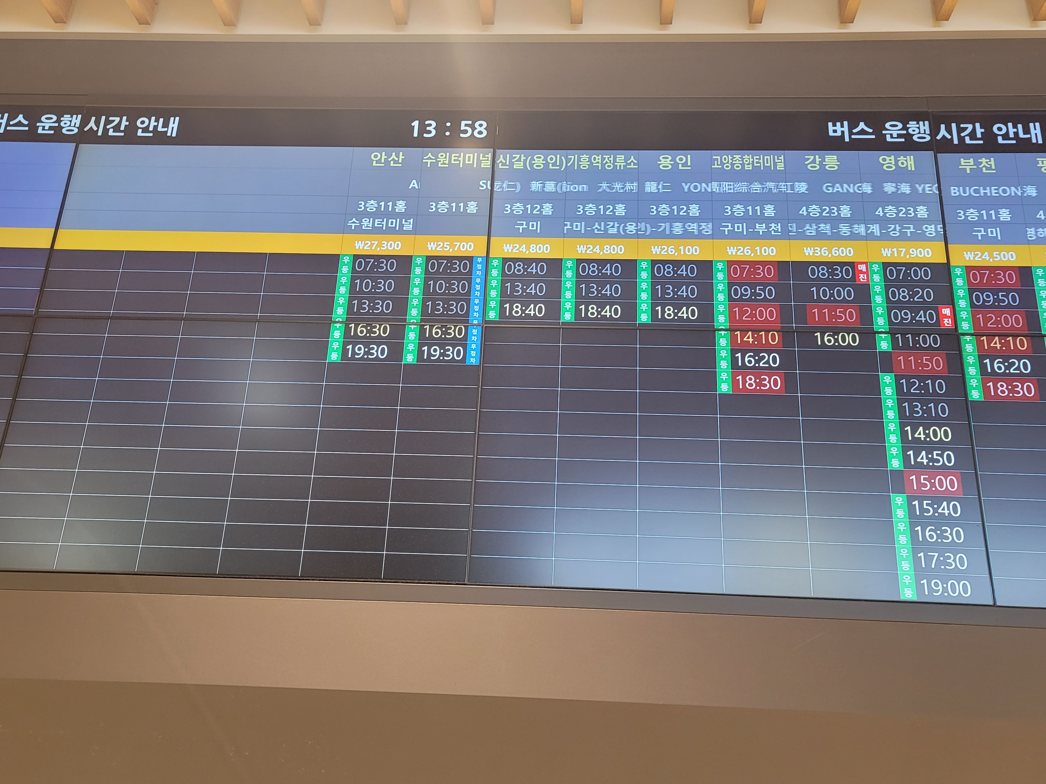 위 사진에 나온 발매 기는 일반 시외버스와 고속버스 발매기가 같이 있는 곳입니다.