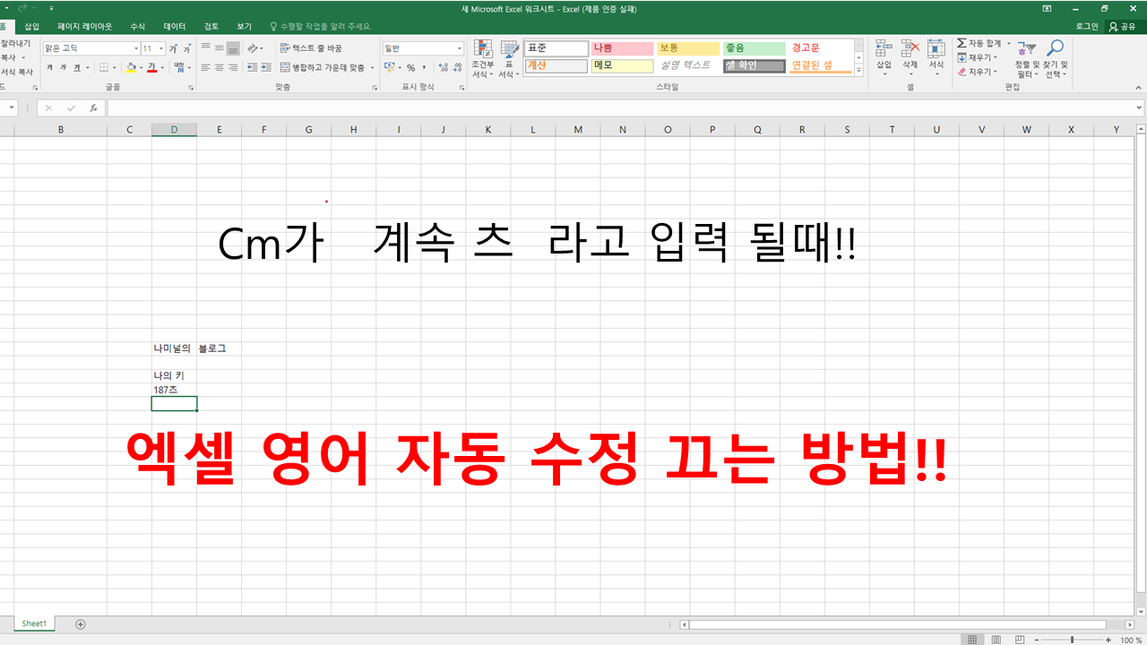 엑셀에서 저는 길이 표시인 CM를 입력하려고 하는데요.