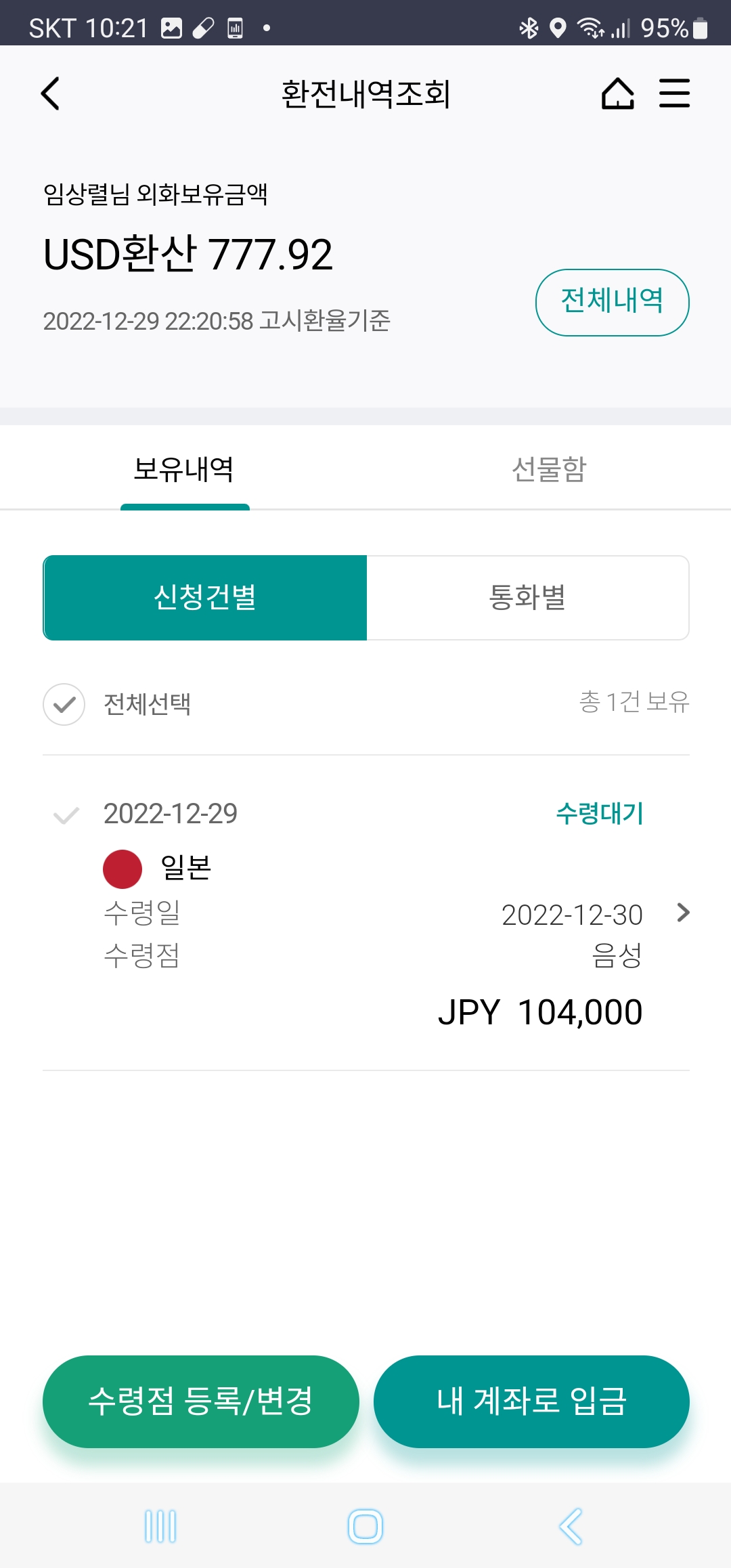 내역조회에서 환전내역 및 보유내역을 보실 수 있습니다. ^.^ ㅎㅎㅎㅎㅎ