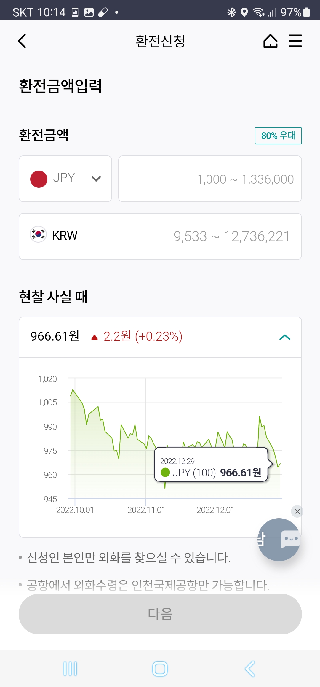 4. 환전우대 % 확인 및 금액 입력