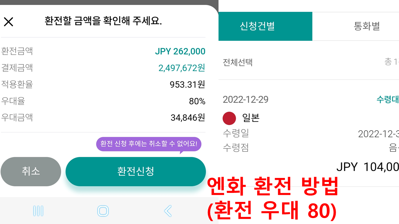 그리고 환전신청을 누르시기 전에