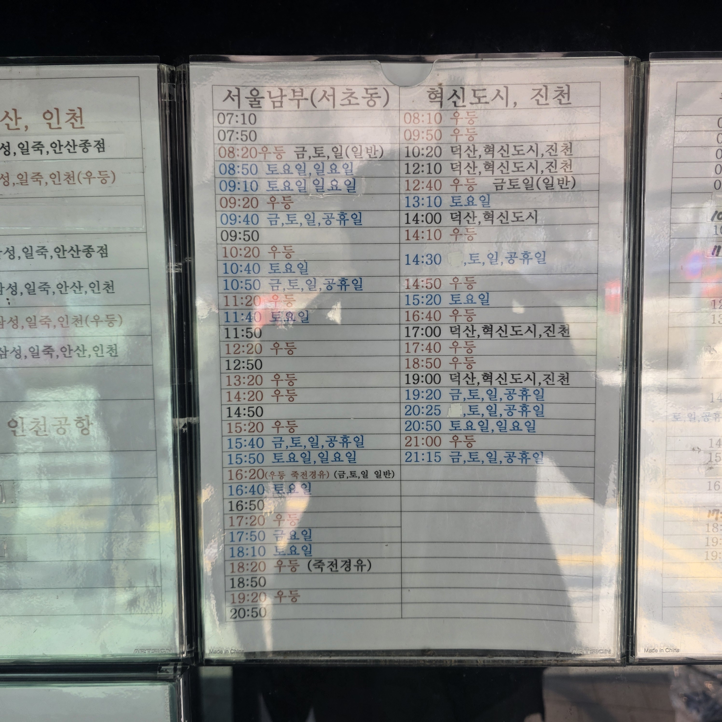 다음은 뭐다? 바로 "경기도행 시외버스 시간표"입니다.!!! ㅎㅎ