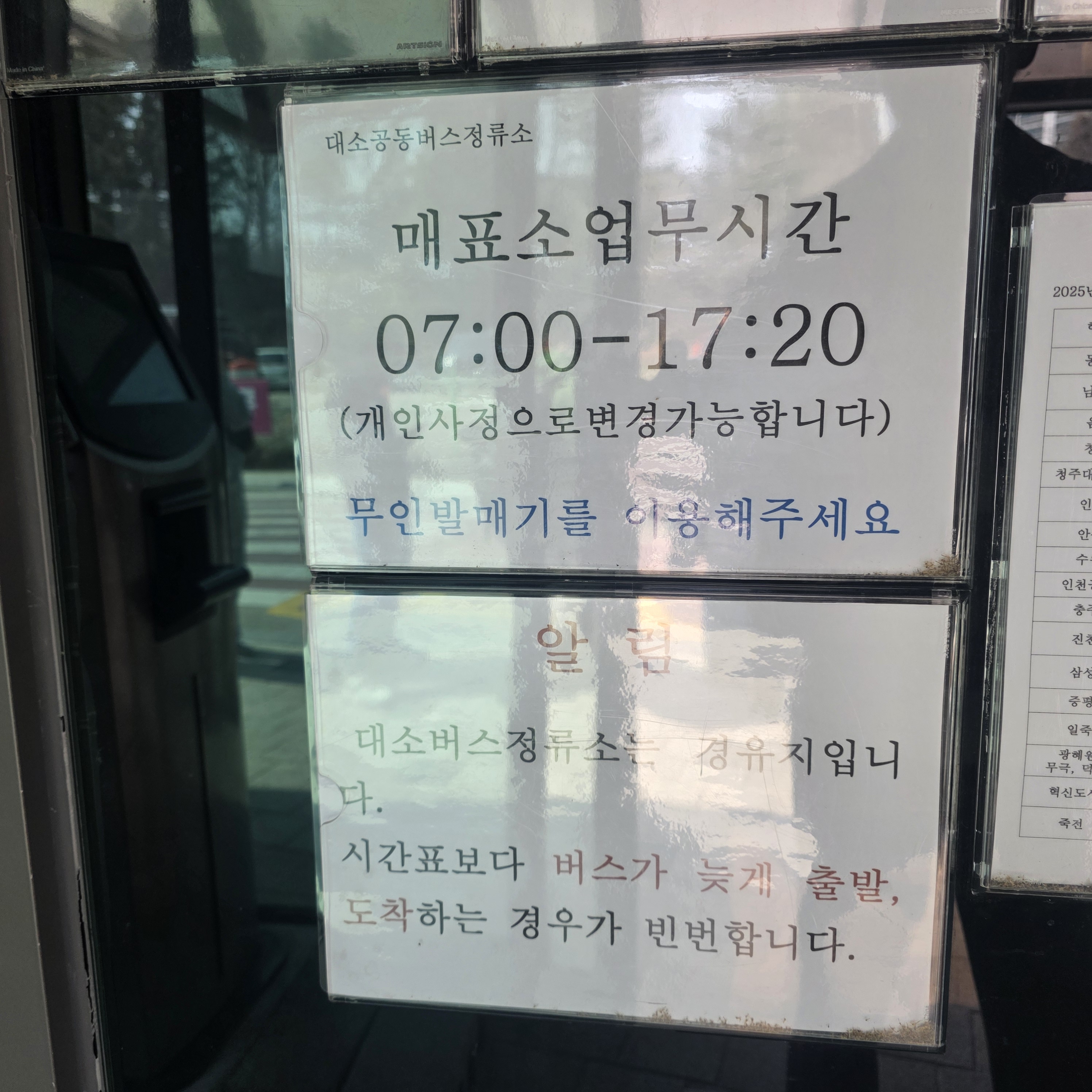 대소버스터미널 매표소 운행 시간 안내 사항에 있는 것처럼