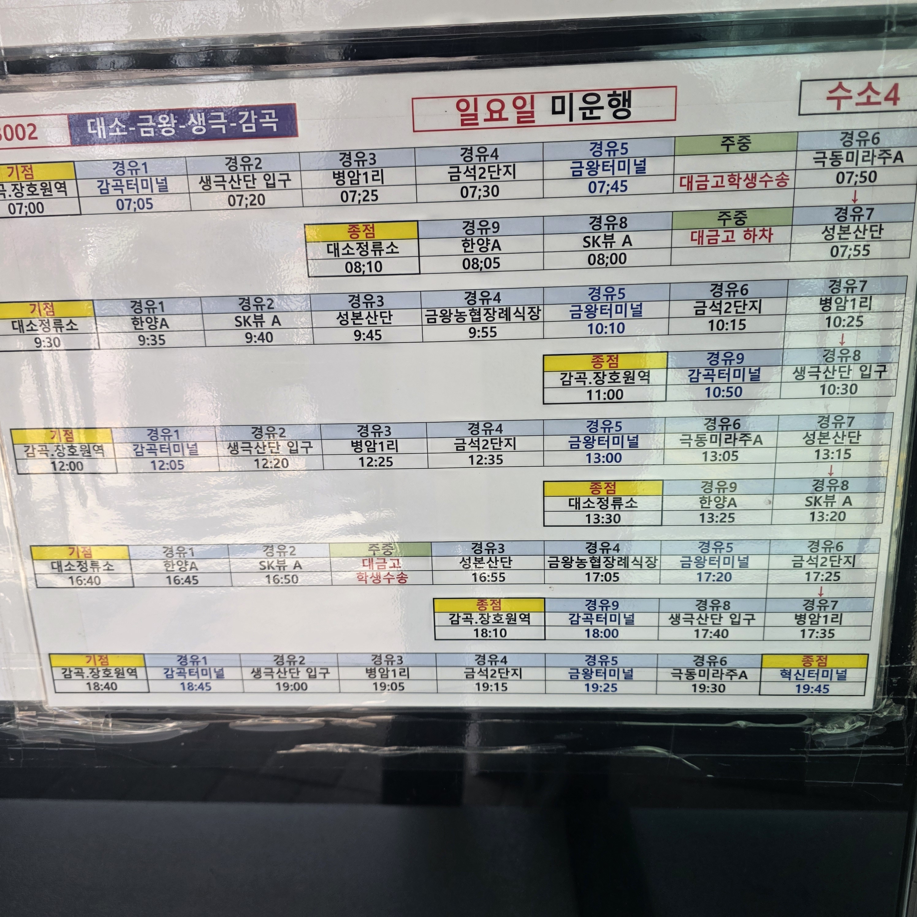 대소버스터미널 남서울행 배차를 확인하실 때는 요일을 잘 확인해 주셔야겠습니다.